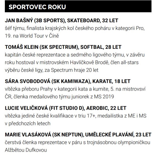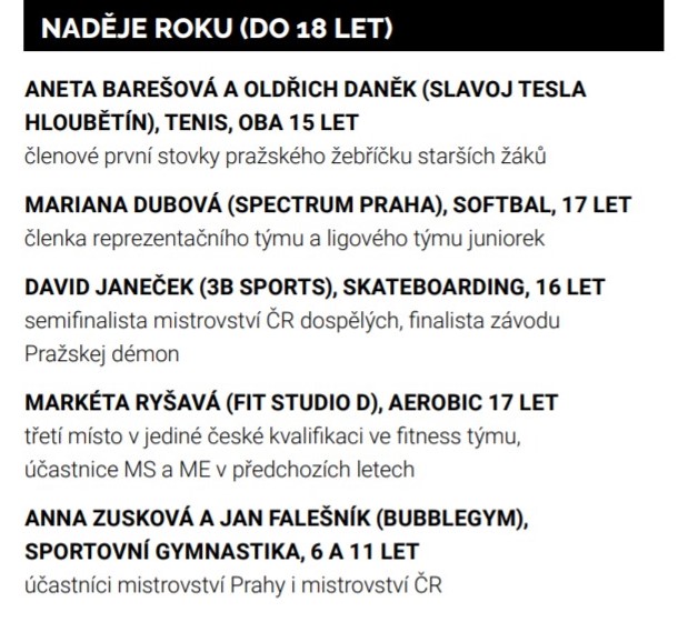 SPORTOVEC ROKU PRAHY 14 ZNÁ NOMINACE